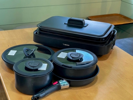 冷蔵庫/オーブンレンジ/トースター/電子ケトル/炊飯器/フライパン/片手鍋/両手鍋/ボウル/ざる/包丁/トング/おたま/フライ返し/調理スプーン/泡だて器/菜箸/まな板/キッチンバサミ/ピーラー/計量カップ/計量スプーン/箸/スプーン/フォーク/ナイフ/食器/マグカップ/グラス/お子様用食器類/カウンターチェア/ワインオープナー/マドラー/お盆/キッチン